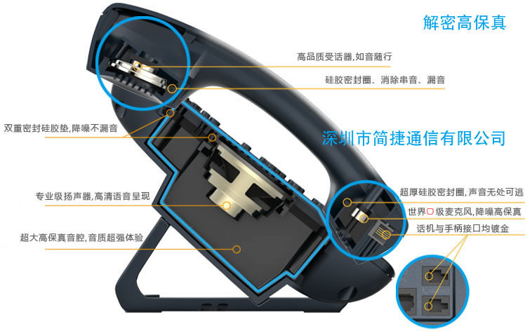 3W全频喇叭,超大音腔,华丽的免提通话音质,适合小型电话会议应用。