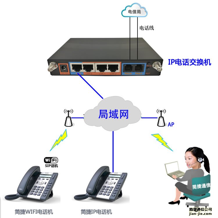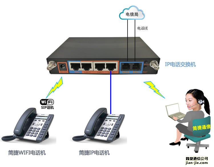提供外线接口。企业总要有个固定电话号码,从电信公司申请两条电话线,接到这两个FXO口上。对外公布电话号码,然后客户打你这个电话,就由本机来处理了。 |