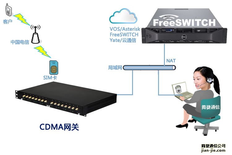 16路中国电信CDMA语音网关是同时支持CDMA(中国电信的2G/3G/4G信号)网络和VoIP网络的综合接入型网关,可以配合IP呼叫中心等SIP服务器,为企业提供了一个操作简单的GoIP/CoIP落地接入方案。