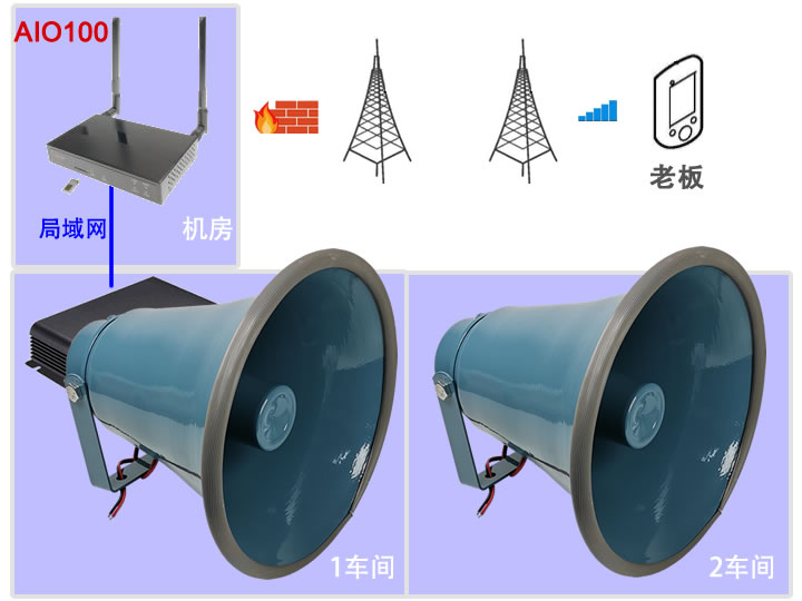 手机打电话的方式对工厂车间进行广播喊话,使用简单。解决方案和安装施工也很简单,采用......