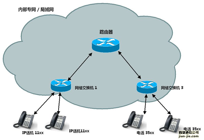 单位内部通话系统可以节约话费,使用方便,提高效率,安全保密。随着内部局域网的普及,通过内部局域网络电话作为承载的内部通话系统越来越收到青睐。这种方式充分利用了现有数据网络的富余带宽,最大化发挥了基础网络优势,优化了资源利用。简捷在局域网内部通话系统方面有丰富的经验,下面就谈谈我们简捷通信公司的设计思路。